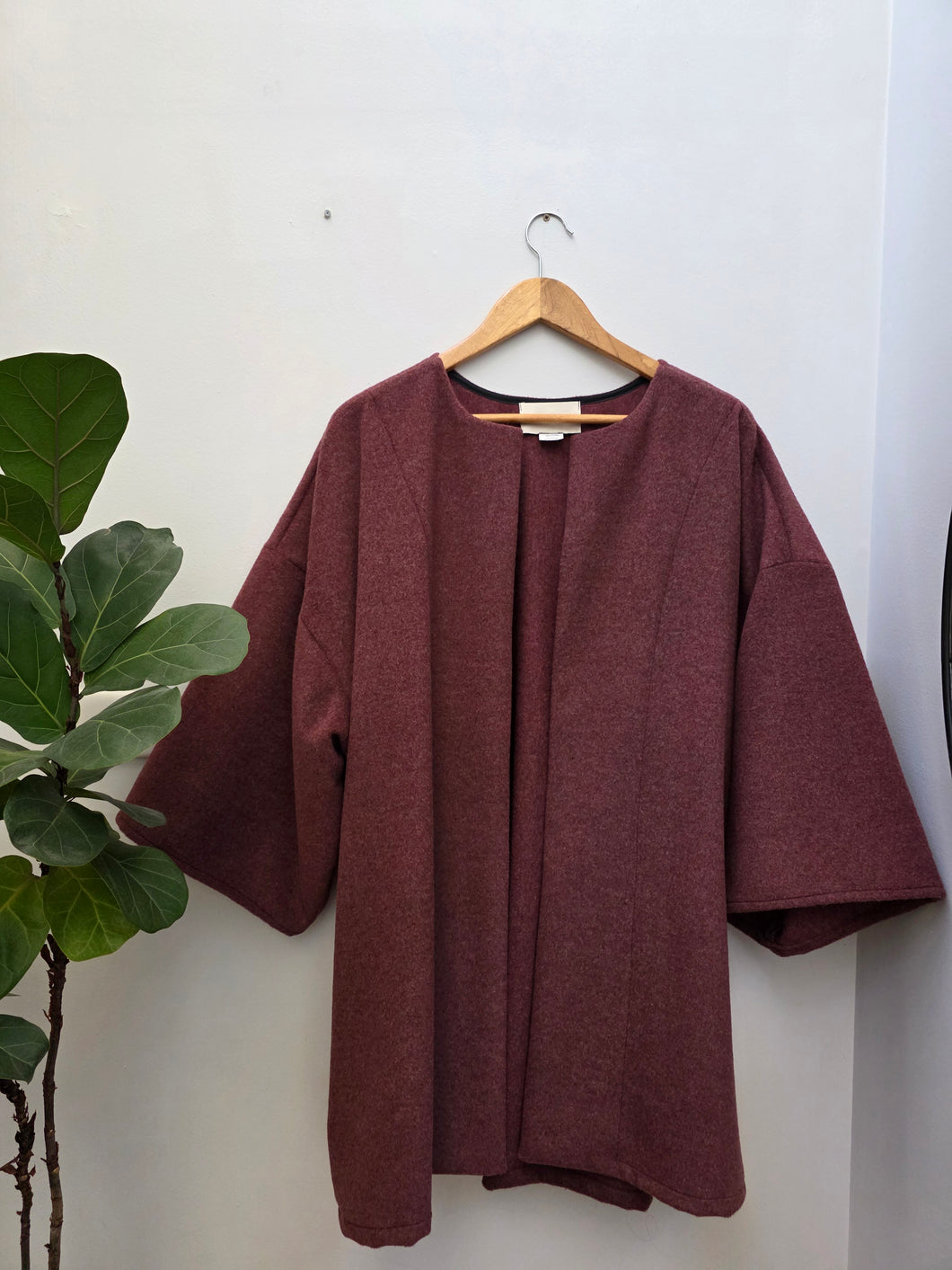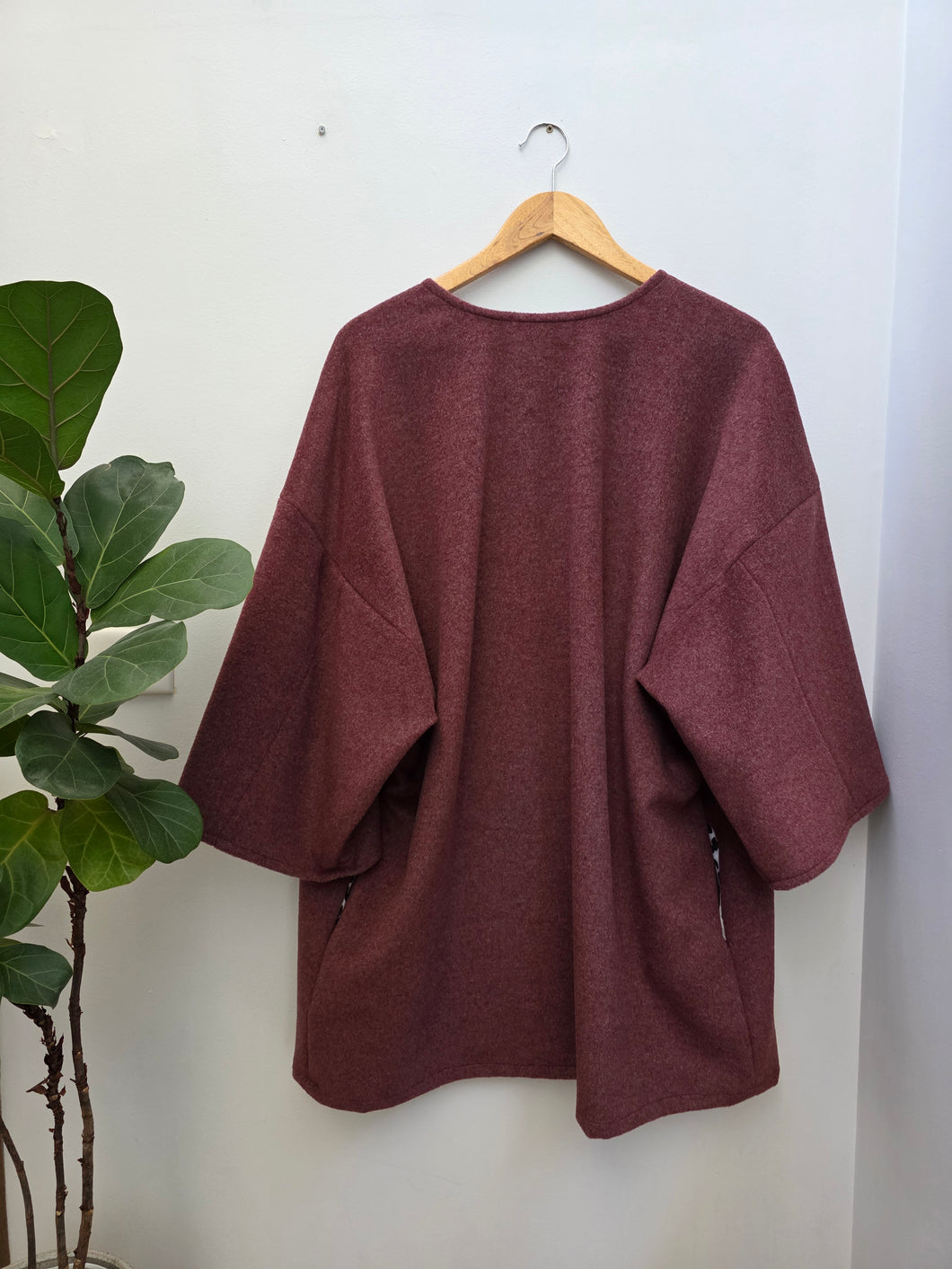 Midnight Cloak - An unlined wool blend Cloak/ Jacket The sleeves sit just below the elbow, hem line sits just above the knee, front closure sitting flush next to each other, unlined.